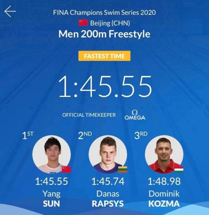 孙杨北京站200米自由泳夺冠复仇拉普塞斯